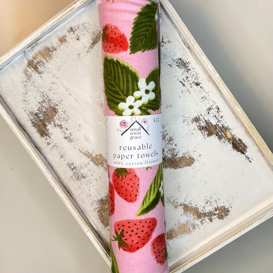 Pink Strawberries Reusable Paper Towels